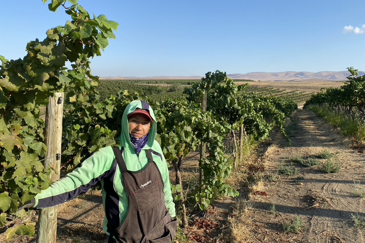 Meet Baldomera Valenzuela, field worker for DuBrul Vineyard in the Yakima Valley. Baldomera has been working in agriculture for 26 years, the last 6 of which she has been with Kerry Sheils at DuBrul. Born and raised in Nayarit, Mexico, Baldomera currently calls Sunnyside, WA home. When asked what Baldomera finds most challenging about working in the vines, her reply was simple: “For me, nothing is difficult.” This lightness of being radiates in all directions. When asked about she does to pass the time outside of work, or what keeps her motivated during the busiest times of harvest, it was all family: “My five children, 15 grandchildren, and two great-grandchildren motivate me,” she told us. When she isn’t out in the vines, Baldomera said she can most often be found knitting blankets for her great- and grandkids. Stay tuned for our in-depth interview with Baldomera, which will be publishing later this month.