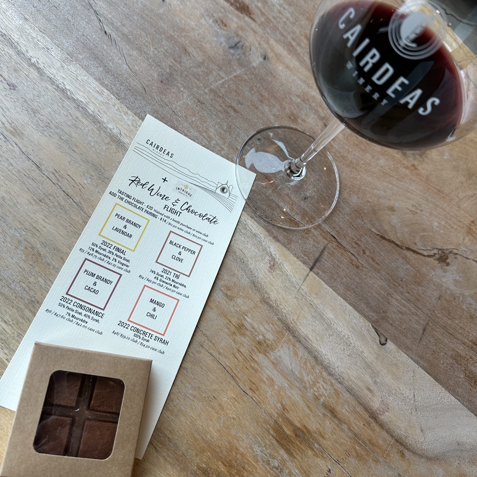 Intrigue Chocolates has scratch-prepared four handcrafted truffles, each thoughtfully designed to complement one of our 2022 red wines: Cinsaut, Caisleán an Pápa, Trí, and Consonance. Expect bold flavors, subtle nuances, and pairings that highlight the best of both the glass and the ganache.