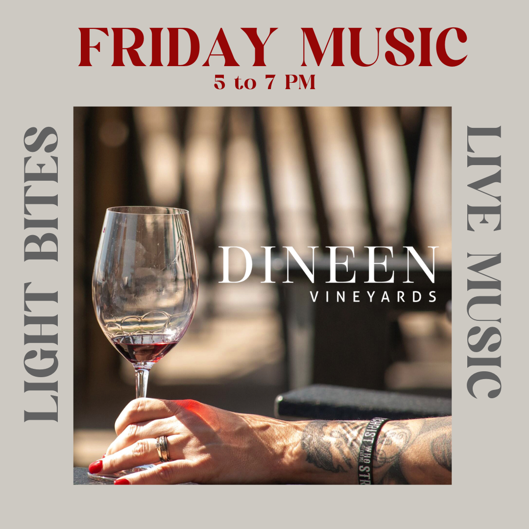 Kick off summer with live music in the vineyard starting June 6! Join us from 5β7 PM for wine, views, lite bites, and great vibes. Book a table (dineenvineyards.com) or bring a blanket and relax on the lawnβkids welcome!