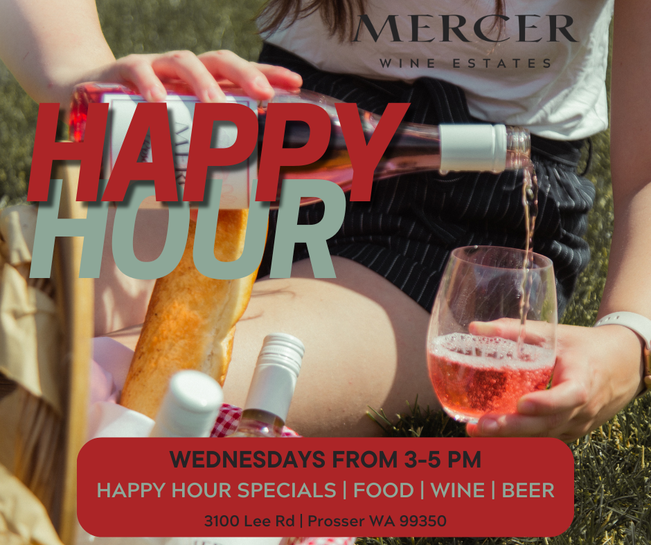 Join us from 3-5 every Wednesday in Prosser for specials on wines by the glass, by the bottle, Varietal Beer, and small plates.