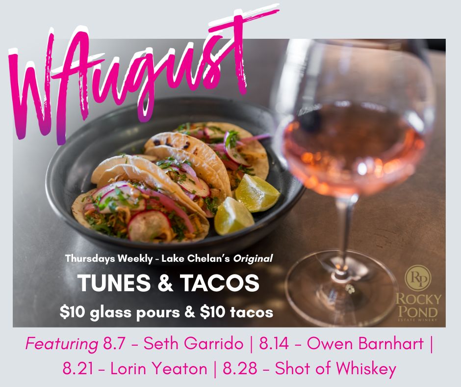 Lake Chelan’s Original “Tunes & Tacos” featuring $10 Tacos, $10 Glass Pours and Live Music – Thursdays Weekly.