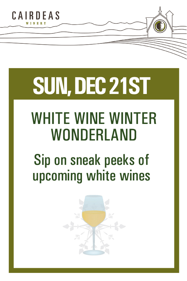 Join Charlie and Lacey Lybecker in Lake Chelan for a behind-the-scenes winery tour and a sneak taste of the next vintage of our white wines! Tours will run throughout the day, and you’re welcome to join before or after your tasting flight. Come celebrate the season and discover what’s next in our winter wonderland of whites!