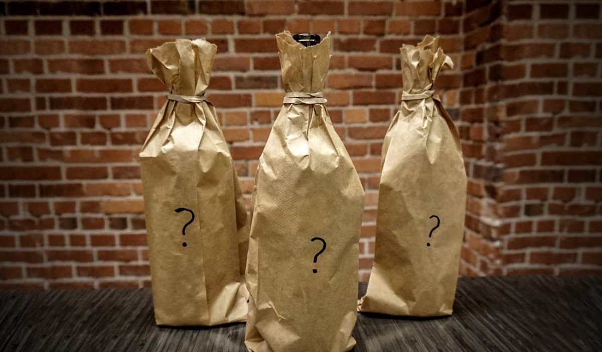 - When guests arrive with their bottles, put each one into a brown paper wine bag secured to the bottle neck with a rubber band. Have a guest who didn’t watch this assembly mix up the order (think “shell game” here). When the mix up is complete, label each bag with a number so guests can keep their notes straight.